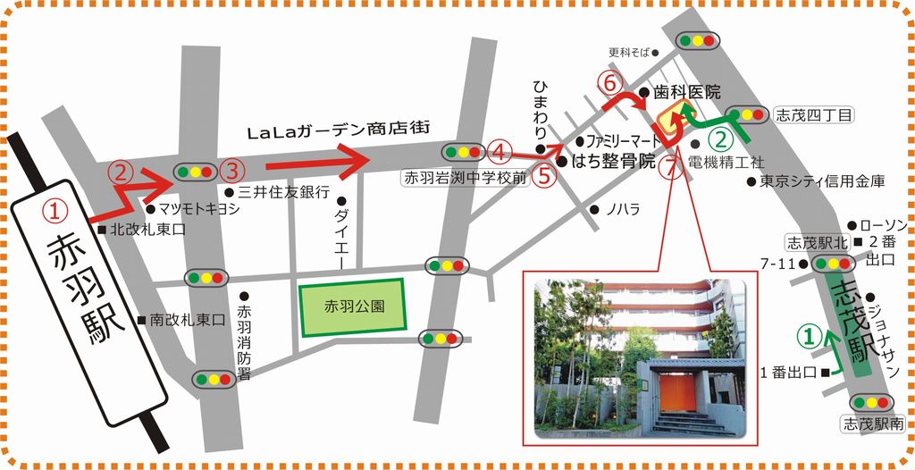 6) After 2 min-walk from the junction, please turn right at a dental clinic, which has green colored sign.
