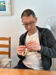 参加者の一人に、ラウハラというハワイの葉の編み物をしてる人がいたので、彼女の遺品のハラの葉を使ってみんなでブレスレットを作りました。お話しをしながら、時には故人のことを思い出しながら、仲間と同じものを作り同じ時間を過ごしたのは、供養になるかなと思いました。